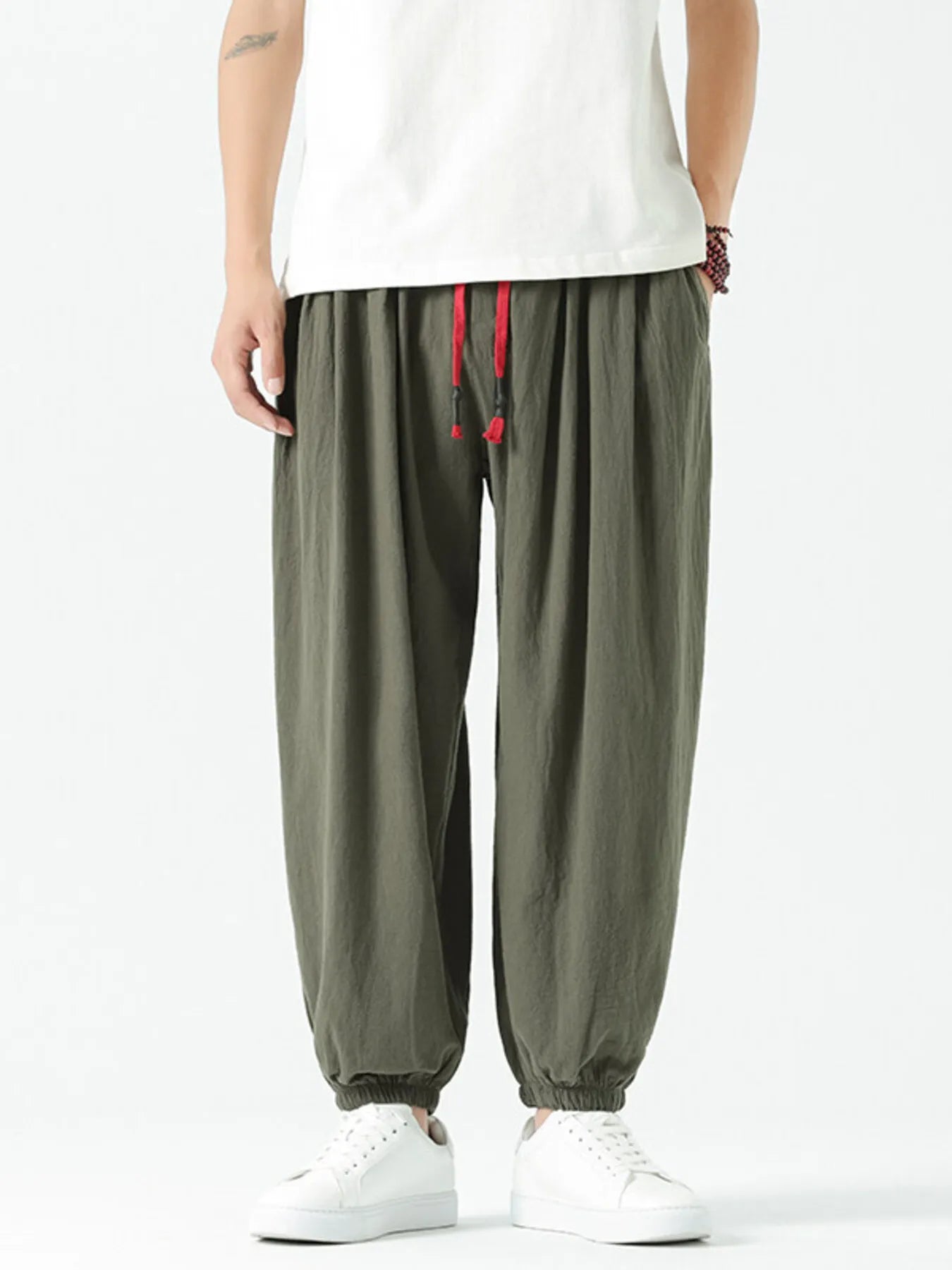 Men's Drawstring Wide Leg Relaxed Fit Pants