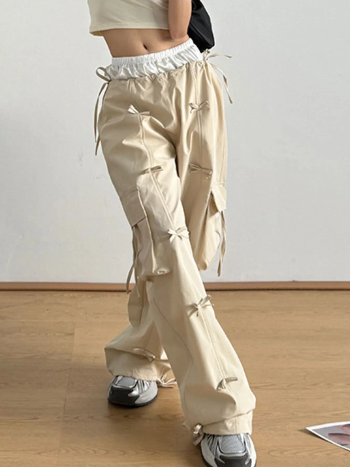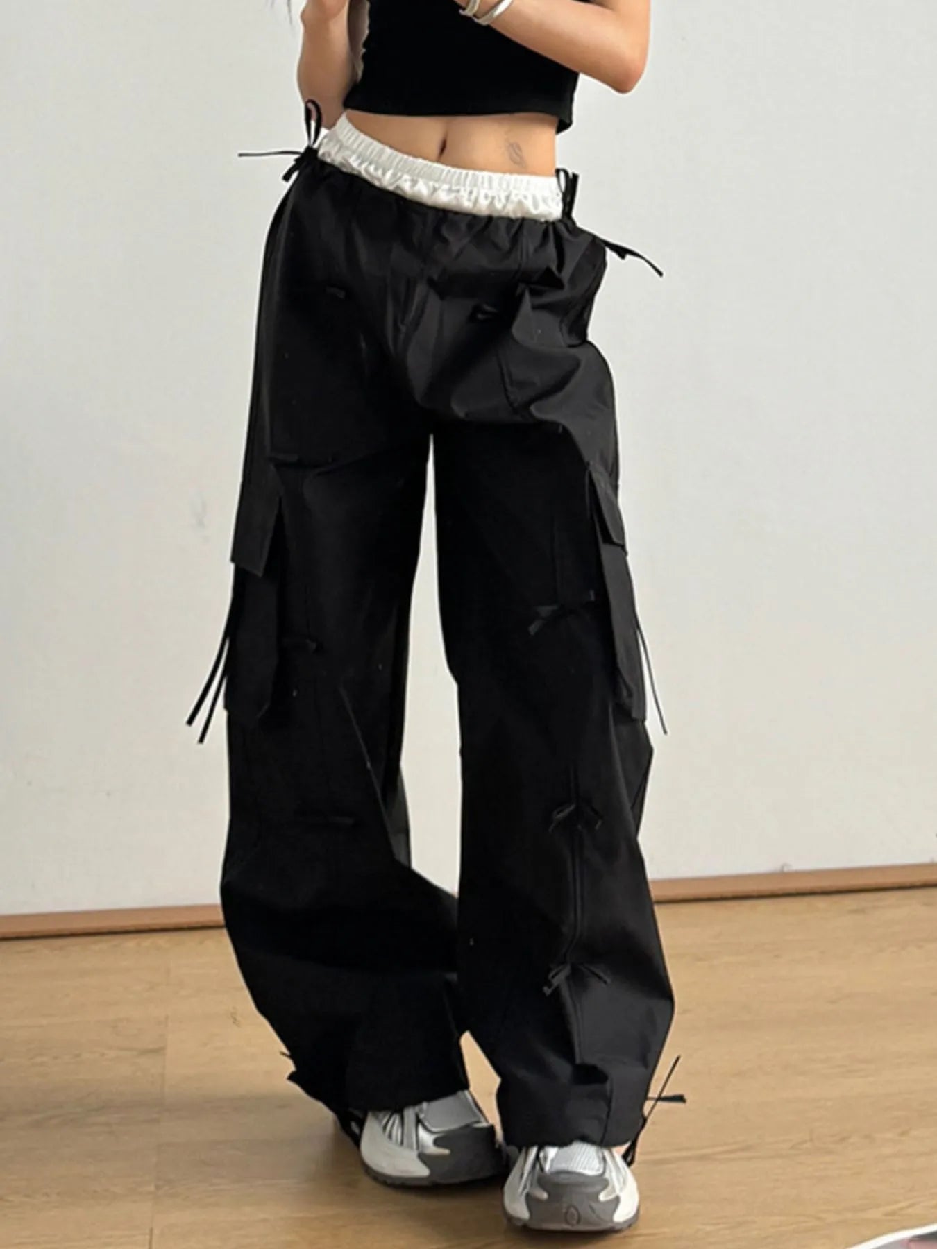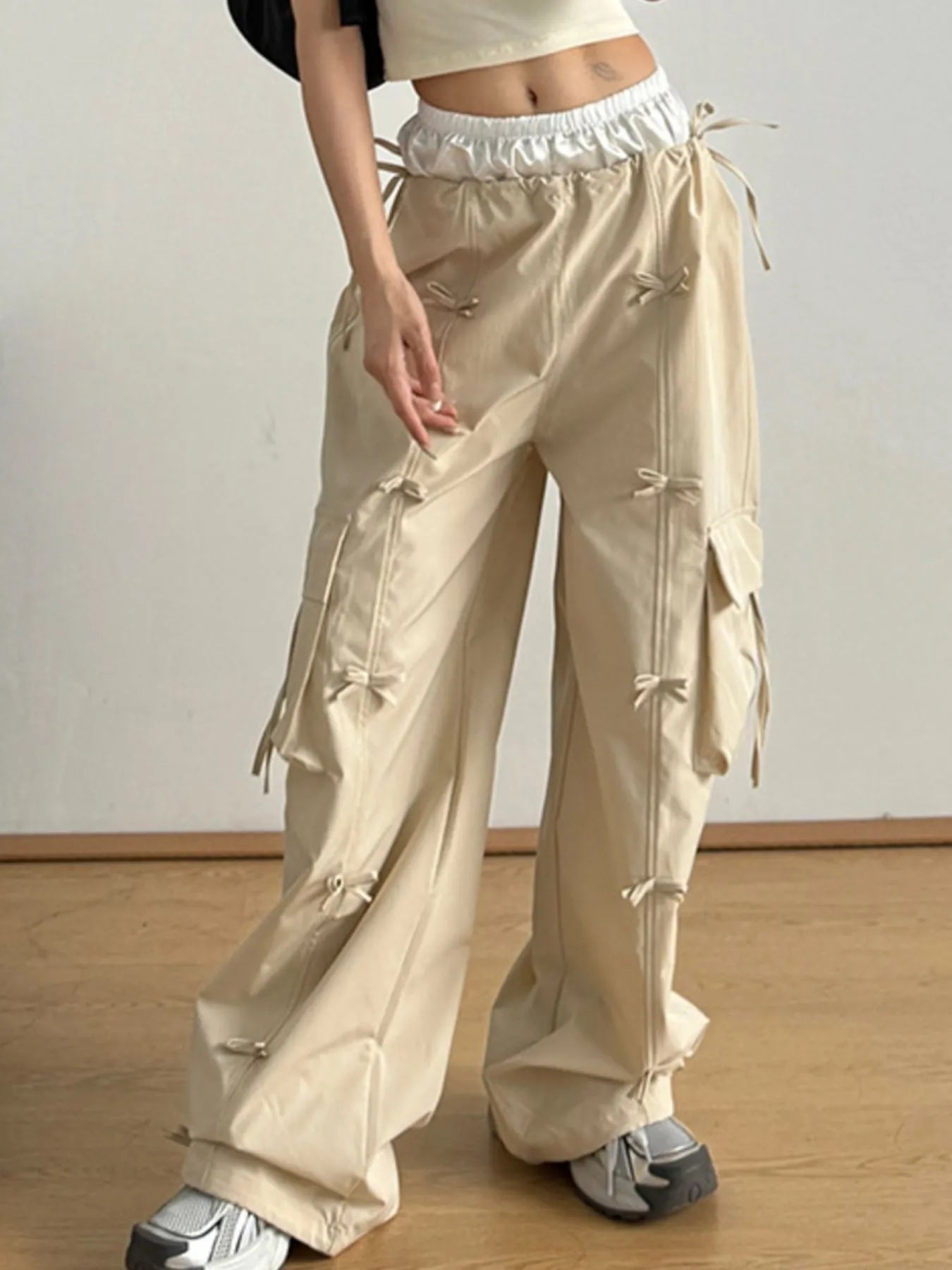 Cargo Wide Leg Pants with Bow Tie Details