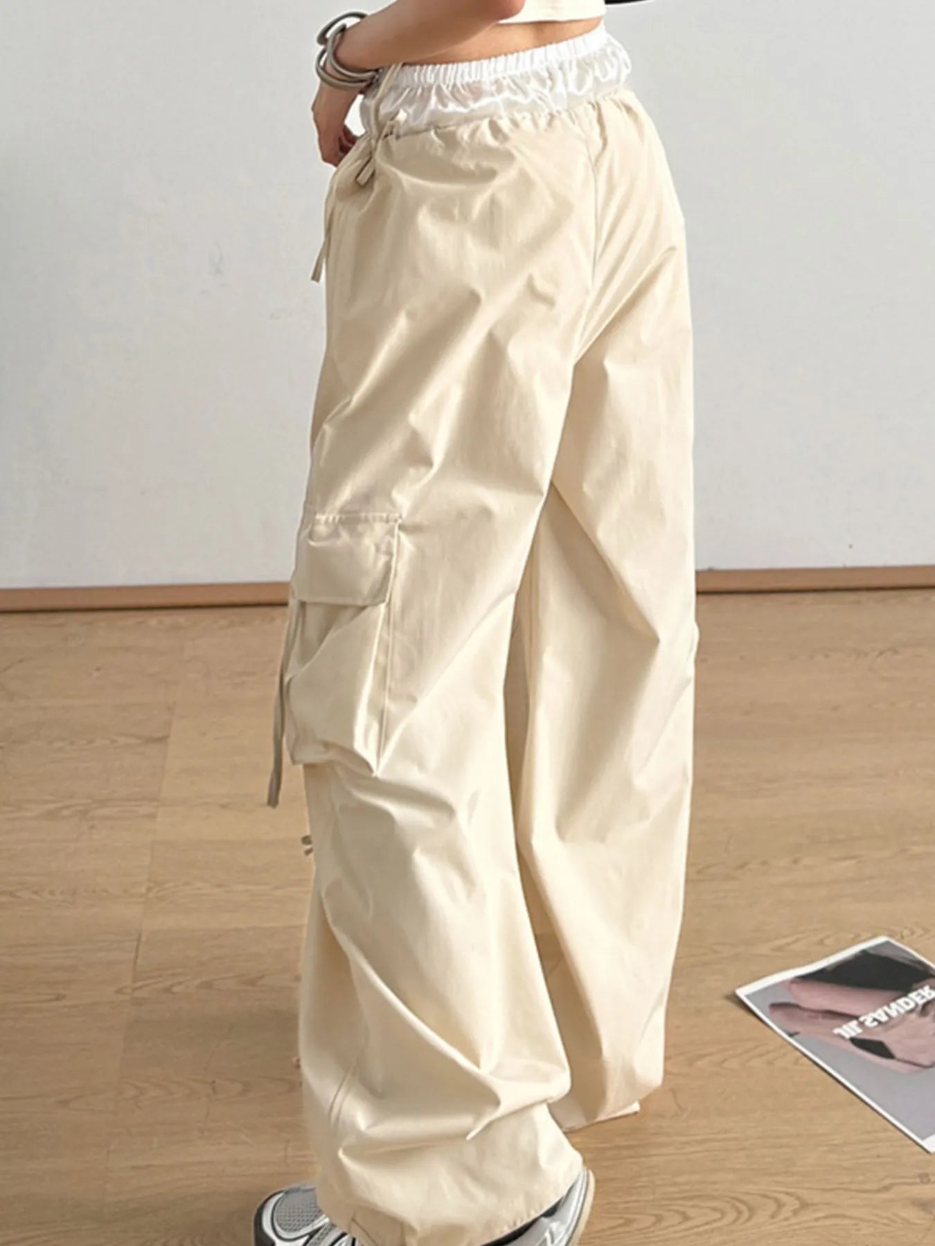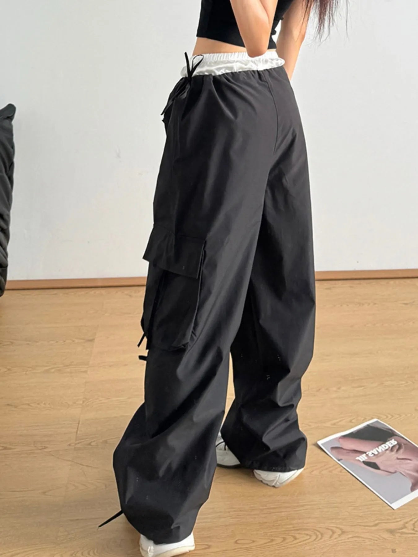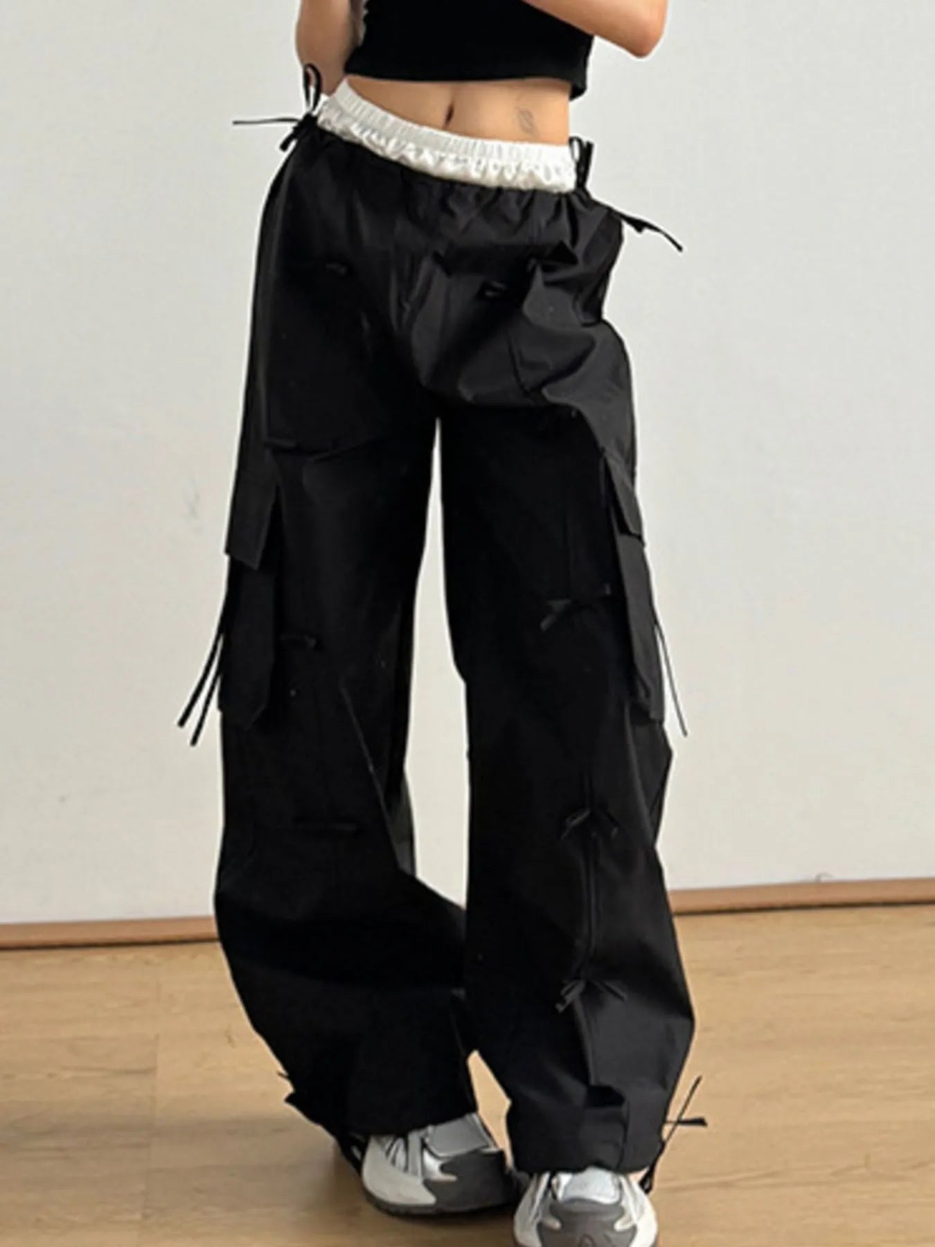 Cargo Wide Leg Pants with Bow Tie Details