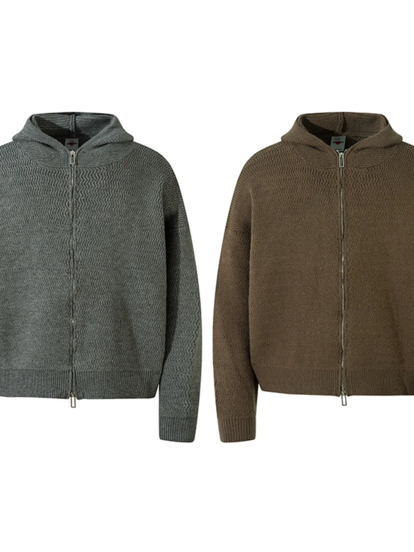 Men's Zip Up Long Sleeve Hooded Cardigan