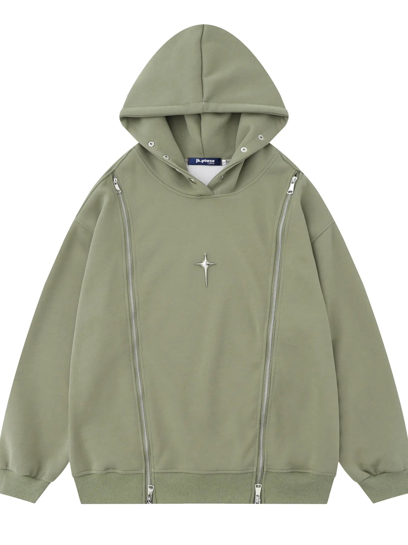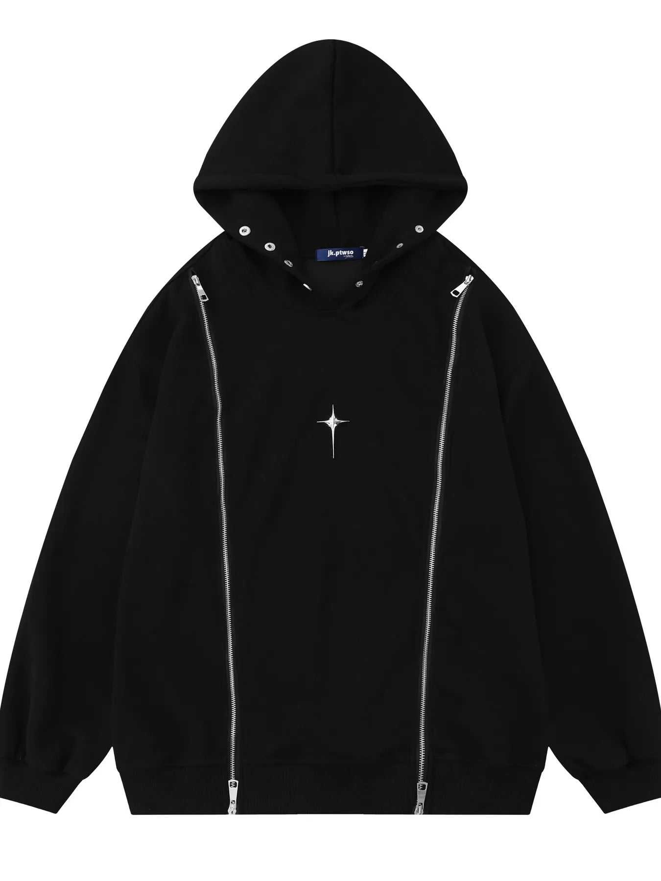 Men's Zipper Details Oversized Relaxed Fit Hoodie